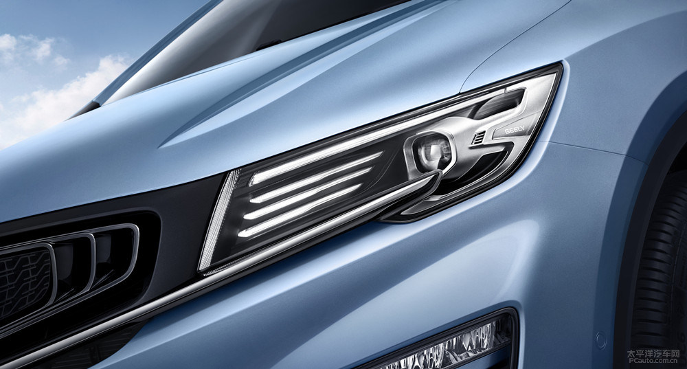 外型一部分,吉利嘉际选用家族式“岁月竟速艺术美学”设计构思,代表性的星辰回纹前格珊具有辨识度,三圈不锈钢饰条紧紧围绕汽车标志逐渐向扩散,配搭柴油发动机机盖上更具有运动感的筋线,构建出更为凶悍的进气格栅造型设计。另外,彗星之翼车大灯与前格珊融为一体,其车大灯组有棱有角,內部加上四条光弧式LED日间行车灯,正下方也一样选用了4颗LED灯构成的一字形前雾灯。