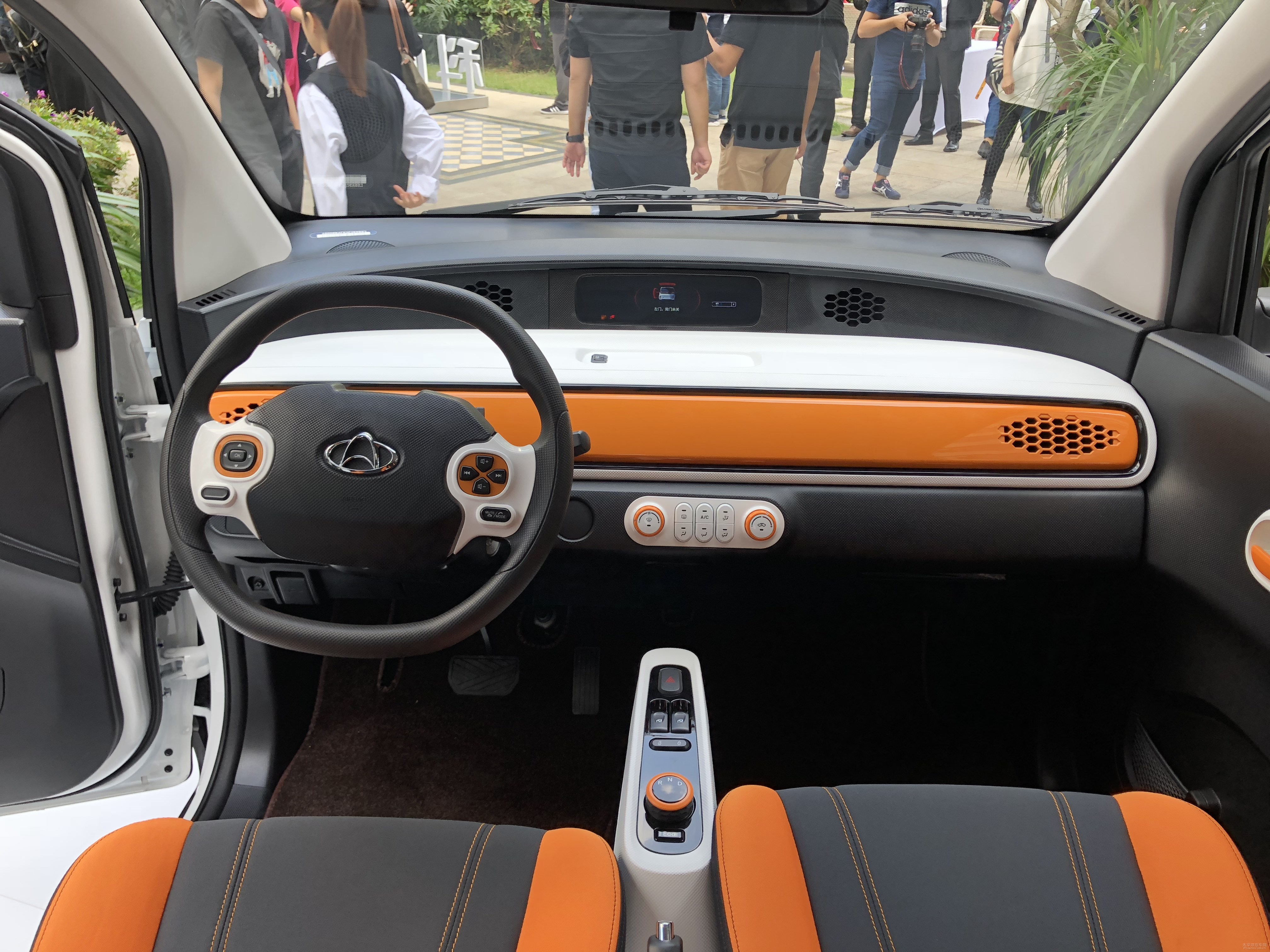 开启汽车车门,展现于眼下的是一副轻快简约的车内饰。仪表台由斜线友谊平行线条刻画,清爽的乳白色控制面板和醒目的橘色控制面板独特配搭,相互配合蜂巢状的空调风口和造型设计别具一格的智能汽车方向盘,构建出年青个性化的车内饰气氛。旋纽式的电子器件挡则十分高新科技、趣味。