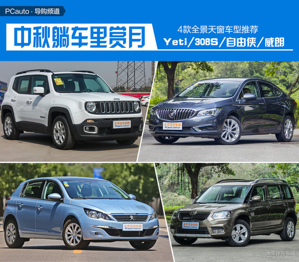 能令人躺在车里中秋赏月的车务必得有一块全景天窗车,有着一个视线宽阔是前提条件,因此为大伙儿强烈推荐的四款不一样种类的有着全景天窗车的车系。她们分别是斯柯达Yeti、标致308S、Jeep自由侠和别克威朗。