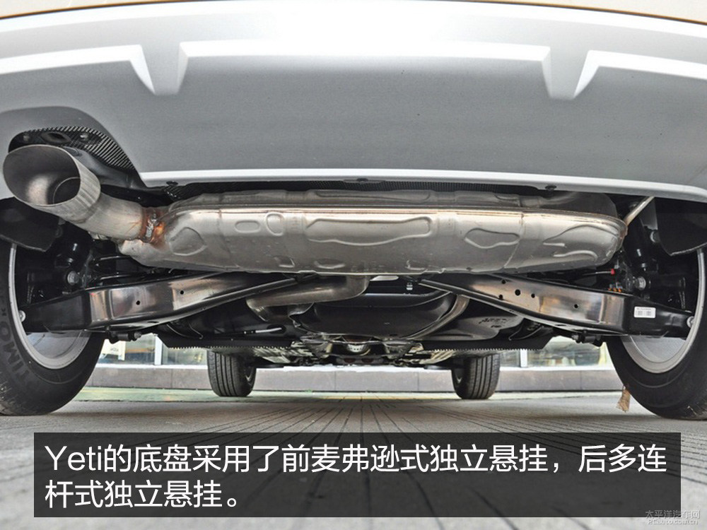 Yeti选用的是多连杆单独后悬,悬架校准比较舒服,对尺寸波动地面的过虑较为果断坚决,不容易造成过多的余震。并且在操纵上也是颇有欧系车的味儿,前端悬架变化灵便,之后段延展性很大,在甩尾时可以迅速地将车体拉回平稳的姿势。