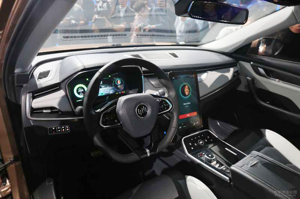 新车内装饰现代感十足:黑、灰两色的装饰设计主旋律、厚底式汽车方向盘、12.8英寸可转动中控台大屏幕、当然视频语音智能化互动系统软件、面部识别技术性、远程控制互连系统软件、成才式动态桌面、与360协作的网络信息安全系统软件、空气过滤系统软件等配备,确实令人耳目一新。