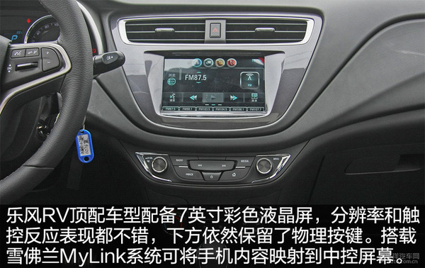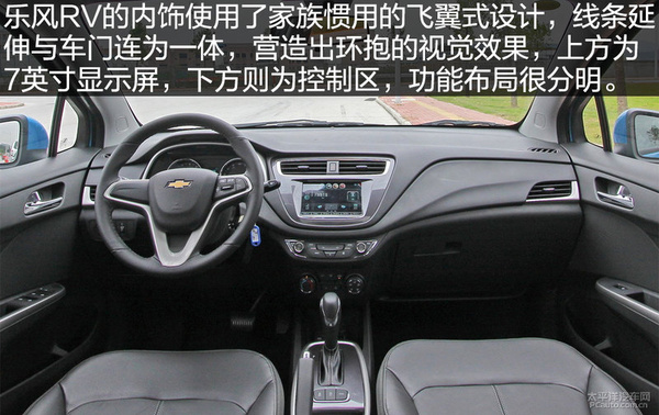 乐风RV的中控台仍然延用了雪弗兰大家族惯有的飞翼式设计方案,“展翅欲飞”的线框拓宽与汽车车门连为一体,构建出横着更宽的视觉冲击,另外质感十足。上边为7英寸显示器,正下方则为保护区,合理布局明晰。