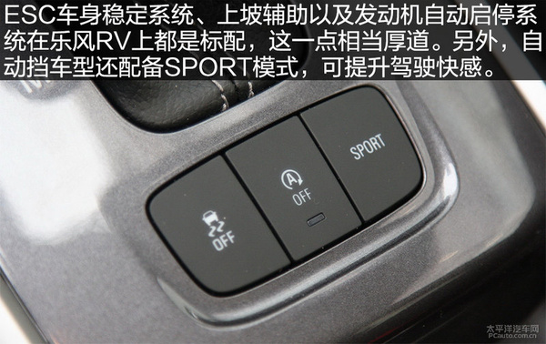 ESC车体平稳系统软件、上坡辅助及其柴油发动机启停系统软件在乐风RV上全是标准配置,这一点非常良心。此外,自动档轿车还配置SPORT方式,以考虑一部分人开快车的安全驾驶规定。