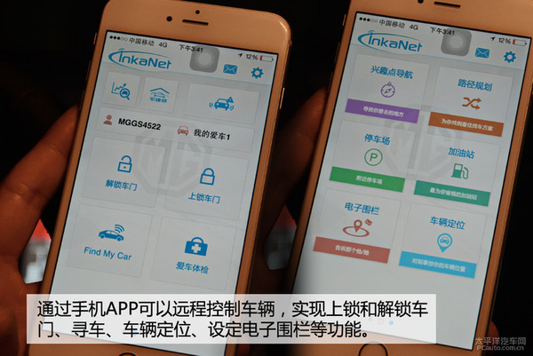 inkaNet 4.0版本号还提升了远程操作车子作用,可根据手机上APP远程操作开启车及其寻车作用。此外还适用手机映射作用,但是仅限安卓机,临时还不兼容ios系统。