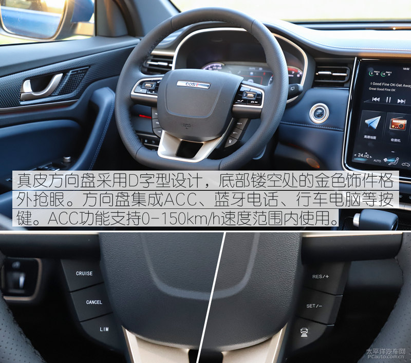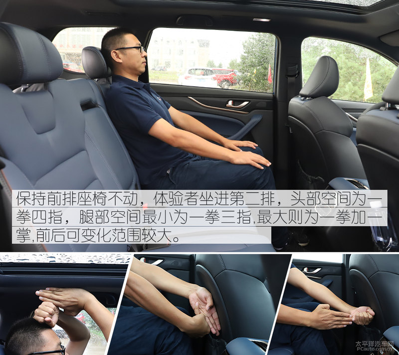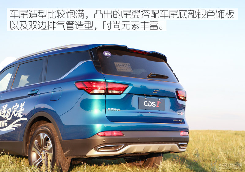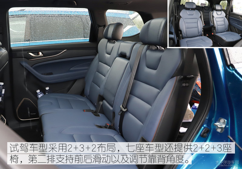 双色座椅比较宽大,前排座椅支持电动调节。乘坐空间表现中规中矩,第二排座椅可调范围较大,能较好地为第三排腾出一定的腿部空间。COS1°提供5/6/7座多种布局可供选择。另外,后备厢除了支持电动开闭以外,还具有脚踢感应功能。