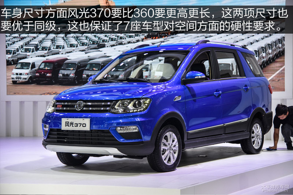 车型点评:东风风光370在吸收了许多风光360上的优点的同时,也新增了许多亮点配置,厂家将宣传的重点放在了5+2的座椅布局和灵活自由的大空间。配置方面,还是那块集成了众多功能的10寸多媒体屏幕最让人印象深刻,如果最终售价真的会像厂家公布的预售价那样在6-7万元,其超高的配置和不错的品质都会使它是一款极具竞争力的车型。