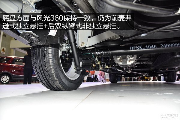 发动机方面目前已知搭载两款代号分别为SFG15-02/SFG15-01的1.5L汽油发动机,两款发动机调教稍微不同,实拍车型为高功率版,最大功率85kW(116PS),最大扭矩147.5Nm,而变速器则为5速手动变速器。这种设定也出现过于风光360上,不同功率的发动机主要用于区分不同排放标准的版本(国Ⅳ、国Ⅴ)。