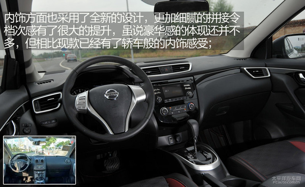 日产在内饰方面的造诣同样不用人多说,更贴近于轿车化的理念设计令乘客愉悦感更强,同时在配置上也要比现款更加实用,丰富的电子配置以及大空间的特性也正好印证了现在小型SUV的发展方向。
