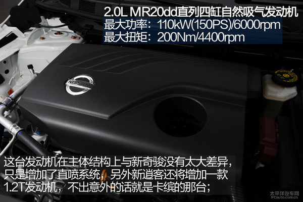 动力方面,除了采用了奇骏上面的那台2.0L缸内直喷发动机外,还提供了1.2T的涡轮增压发动机,在性能方面与老款相比有了很大的提升。