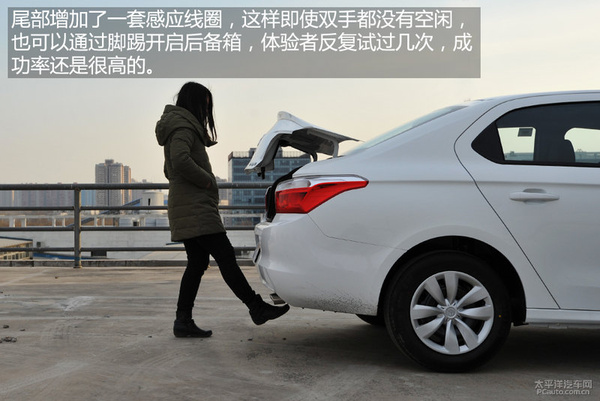 2015款的全新爱丽舍质尙版还增加了智能感应开启行李厢,当驾驶者环抱重物时,只需轻轻抬脚,行李厢即可“duang”——应声开启,这个功能还是非常实用的。