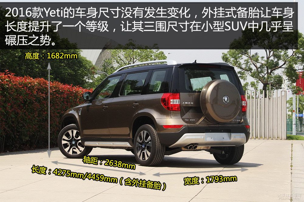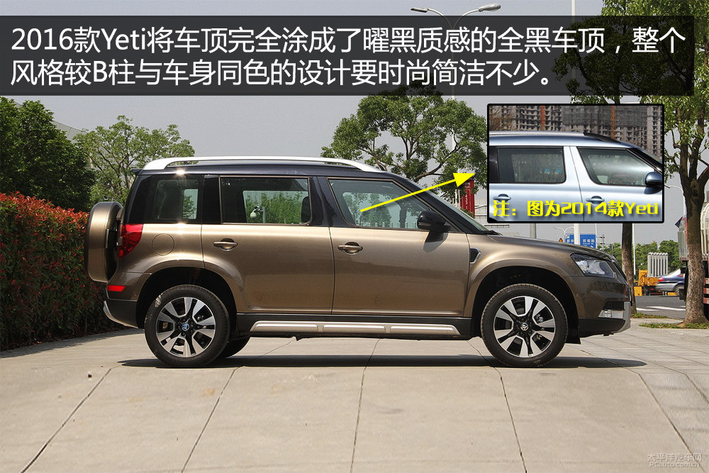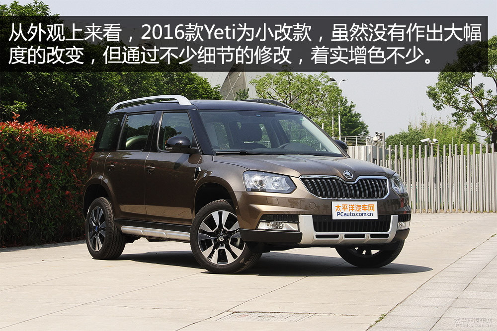作为与途观、奥迪Q3同平台车型,斯柯达首款SUV——Yeti的综合素质可谓相当高,独立独行的外观造型极具个性,四方四正的盒子车身加上第二排可折叠/拆卸座椅,乘坐空间与实用性毋庸置疑,还有那比途观先进的动力总成以及比它更实惠的价格,都继承了斯柯达品牌个性、高性价比等特点。2015年8月7日,全新改款车型2016款Yeti正式面世,并且把竞争对手瞄准昂科拉、缤智等15万热门SUV,强化竞争力为的就是要抢占更多的市场份额。