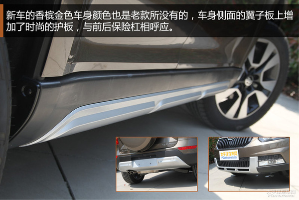 还记得当初Yeti刚进口到中国来的时候,车头两盏圆形分体式大灯确实备受争议,但后来国产版便采用了现在这种能被大多数人所接受而又不失个性的设计。2016款Yeti在前翼子板处增加装饰件,另外中高配B柱也不再采用与车身同色的设计,以上几处改动虽不明显,但外观细节上的修改让整车看起来更为协调,看得出来,酷炫劲动依然是它的主调。