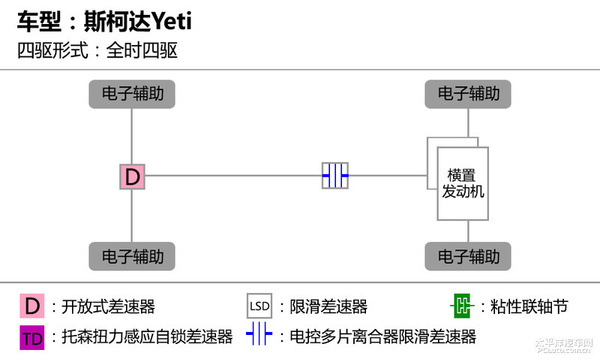 既然Yeti与途观出自同一平台,那在配置方面也会向该级别车型靠拢。像是胎压监测、车身稳定控制系统、上坡辅助、陡坡缓降、带加热功能的电动调节座椅、双区自动空调以及自动泊车等同级别罕见的配置应有尽有。顶配车型搭载了跟途观一样的全时四驱系统,这套系统以Haldex第四代四驱系统为核心,并配备独特的OFF-ROAD智能越野模式。