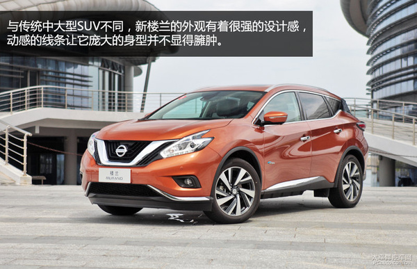 全新楼兰的外观造型前卫俊俏,无论你从哪个角度去看它,都能轻易的发现其设计独到之处,这样的车丢到车流中,绝对要让人回眸数次。如今SUV越来越多,谁都不想自己的新车泯灭于车流中,如果你买的是楼兰,我想你一定不会有这样的担心,视觉冲击力在楼兰身上会很好的转变为美誉度。