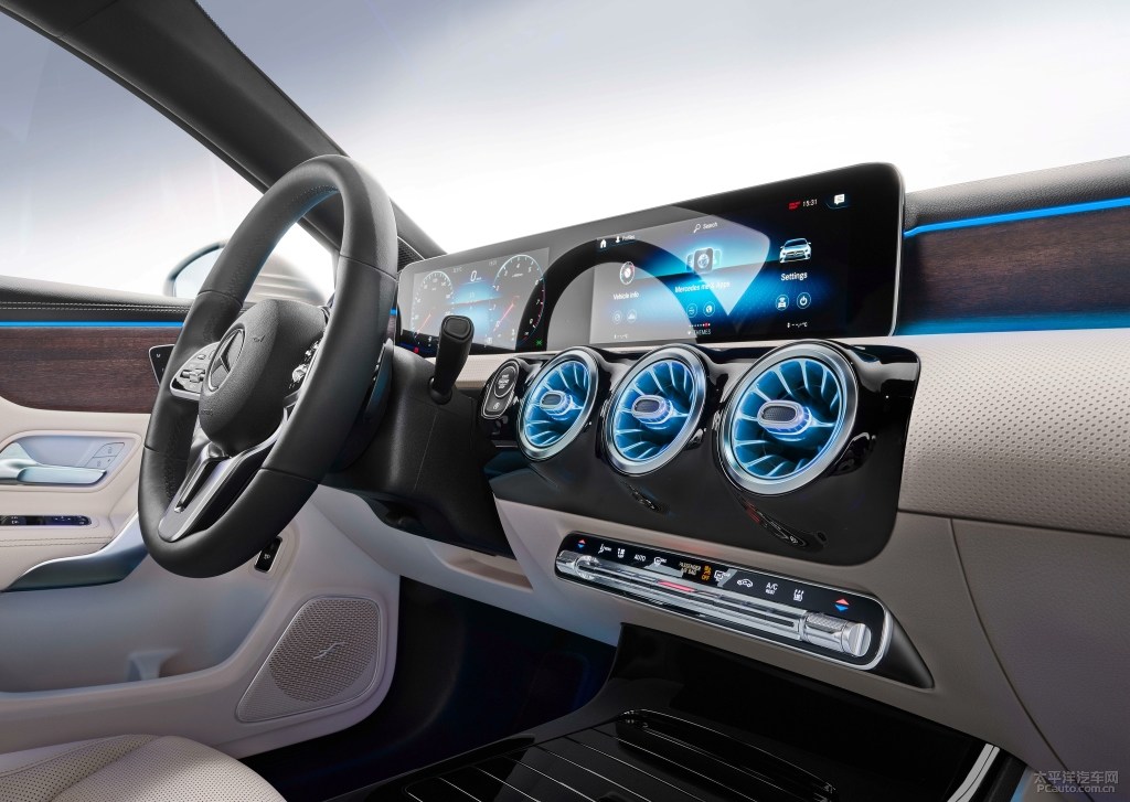 在豪华品牌紧凑型车领域,国产全新A级的内饰设计较为出彩。双10.25英寸液晶显示屏、与全新CLS相同的空调出风口造型以及科技感十足的三辐式多功能方向盘等细节都使新车拥有不错的质感。