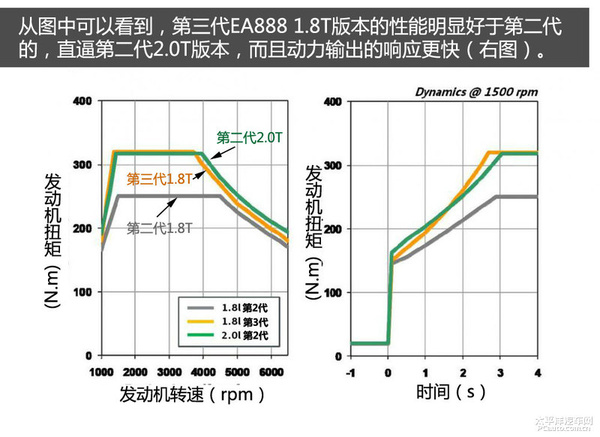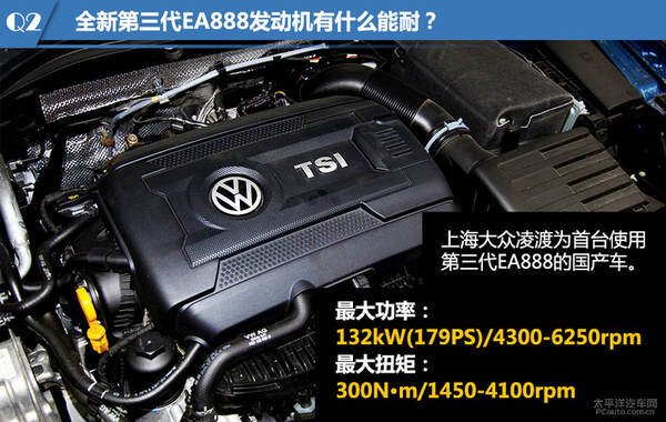 凌渡采用最新技术的1.8T发动机(第三代EA888),动力输出已经接近了前代产品2.0T的水平,最大功率输出为132kW/4300-6250rpm,比原来的1.8T高出大约12%,最大扭矩达到300Nm/14504100rpm。在匹配了同样最新技术的7速双离合变速器之后,据称凌渡的0-100km/h加速成绩可以达到7.9秒。但这套动力总成给人最直观的感受并不是“快、猛”,而是“顺”,更符合一台家用车的表现,简言之就是和任何性能车有关的词汇不搭边。