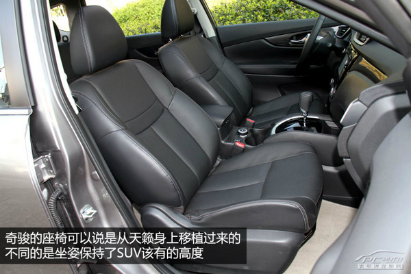 奇骏的座椅可以说是从天籁身上移植过来的,不同的是坐姿保持了SUV该有的高度,其中高配车型驾驶员是带有8向电动座椅调节的,但略微不足的是副驾驶位依然是全手动控制。