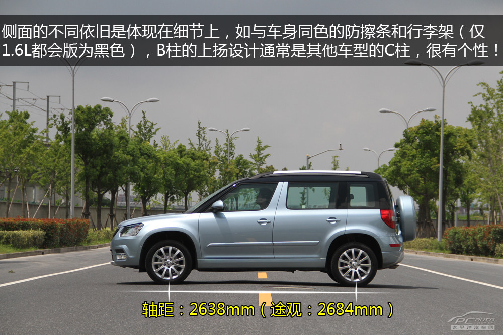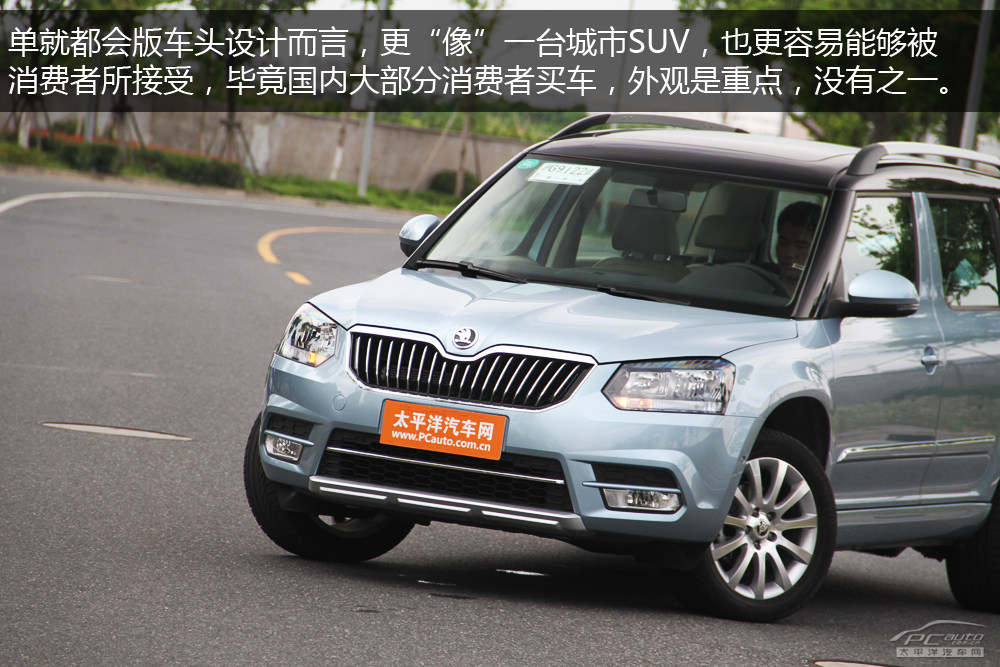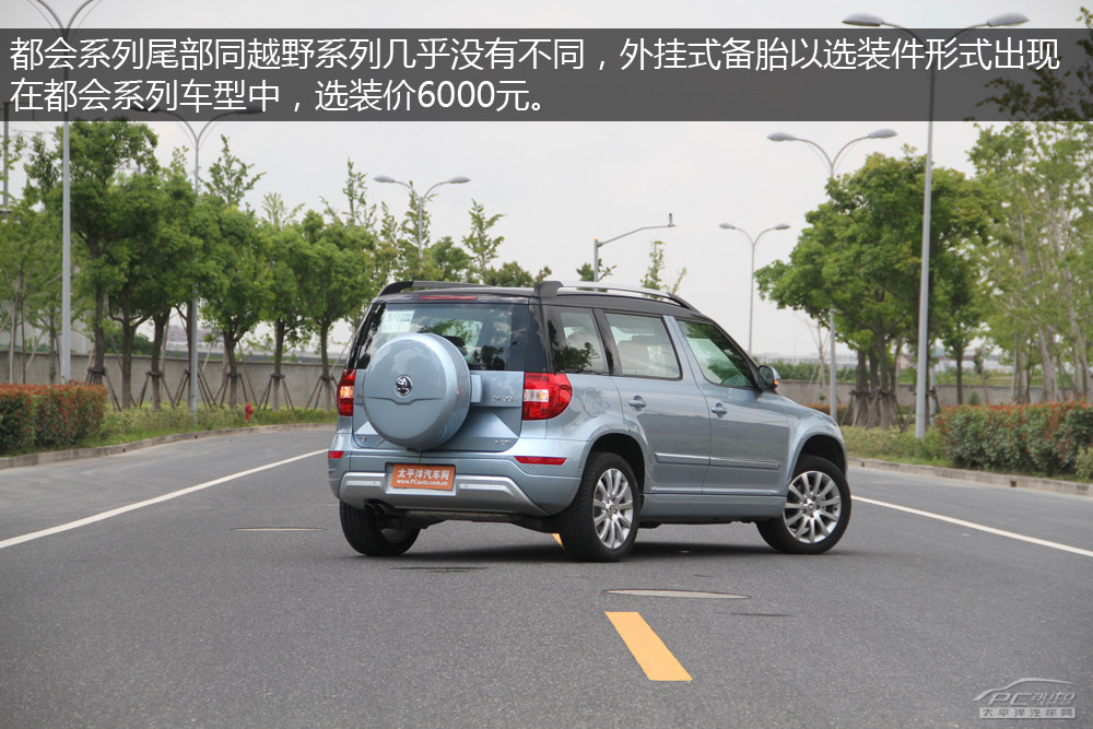 斯柯达Yeti的前脸造型用上棱角分明的全新家族式脸谱之后,在艺术性和个性的基础上,向着普罗大众能接受的方向改进了很多,亲和力有很大的提升。不过它硬朗的车身线条和外挂式备胎(6000元选装)依然没变,诚然是个个性的“小硬汉”。