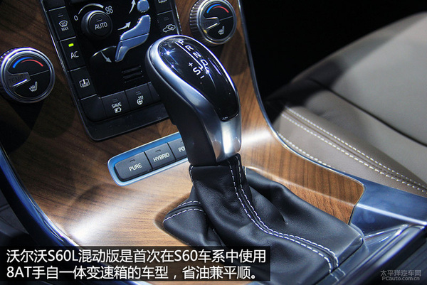 在变速器方面,沃尔沃S60L采用的是8速手自一体变速箱,这款变速器与XC60上面的8速变速器一致,表现是非常的节油与平顺。根据沃尔沃的官方资料,在满电混合动力模式下,一缸油可以跑超过1000公里,综合油耗为2.1L/100km。