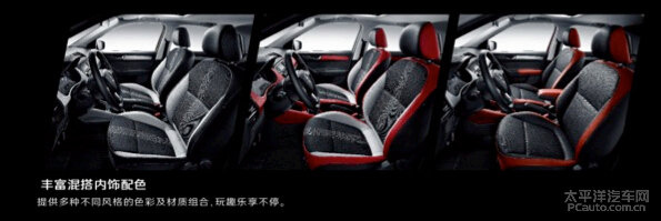 内饰和座椅颜色的搭配也十分丰富,有6种不同方案可选,低配前行版为灰黑织物,中配创行版标配灰黑高级织物内饰,并可加钱选装米黑PVC+织物内饰,而运动版则为灰黑PVC+织物内饰,另有旋风红黑PVC+织物内饰可选,顶配智行版则独享实拍图所示的这种红黑PVC+织物内饰。