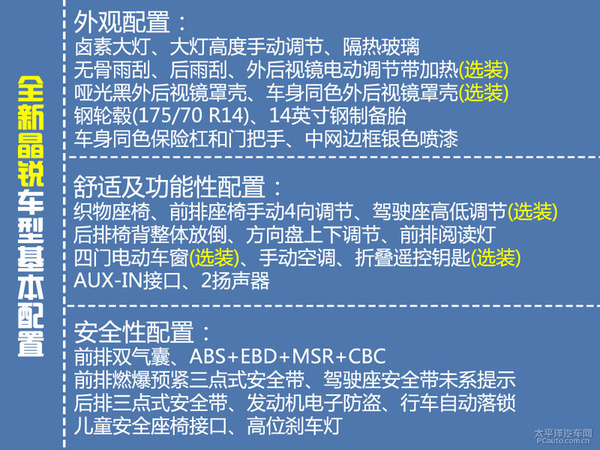 车型小结:全新晶锐在个性化上的提升让其在小车行列中变得更加出众,这将会起到吸引消费者眼球的作用,再加上整体价格有所降低,中高配车型性价比提升,日后有望摆脱老款的困局从而获得更多的关注和销量。