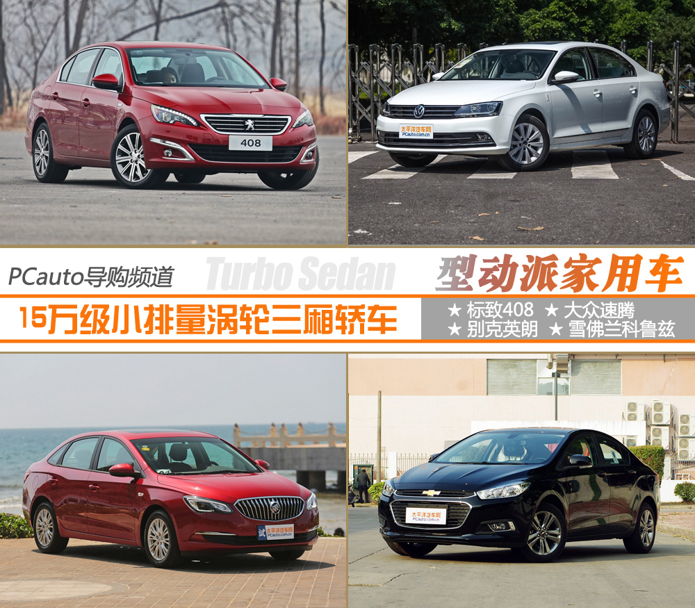 【尊流汽车网 导购频道】今年一波搭载小排量涡轮增压发动机的车型上市,在追求低排放低油耗强动力的路上,我们的选择变得越来越丰富,此前我们就介绍了《小排量SUV》和《小排量运动两厢车》,而今天我们来推荐四款15万级的三厢家轿,它们都搭载了小排量涡轮增压发动机,其中最惹眼的是率先搭载1.2T发动机的标致408,另外配备1.4T发动机的别克英朗也是今年上市的新车,还有同级销量领先的速腾和科鲁兹,它们也都有1.4T车型可供选择,下面来看详细介绍。