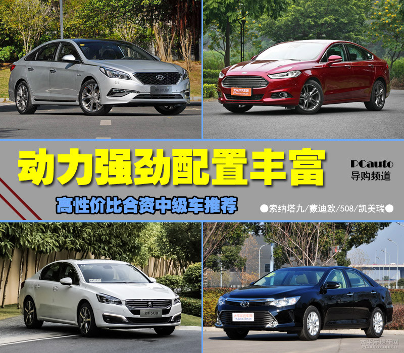 本次推荐的四款高性价比中级车分别是北京现代索纳塔九、长安福特蒙迪欧、东风标致508以及广汽丰田凯美瑞。全新索纳塔九自然不必多说,强劲高效的1.6T+7DCT动力组合,配上韩系车一贯的丰富配置和惊艳外形,实在是高性价比的典范;蒙迪欧科技配置丰富,不俗的动力以及较好的驾控感受加上实惠的售价,也让其具有不俗的性价比;中期改款的标致508和凯美瑞外观有了不少变化,而全新的动力总成也大大提升了其竞争力。