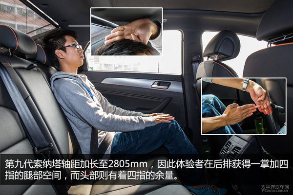 索纳塔九在保留了上一代车型长车头、短车尾特征的同时,还对乘员舱部分进行了扩容,从数据上来看这一代车型对空间的改善还是很明显的,比如轴距部分增加了10mm达到2805mm;A柱前移23mm,C柱后推83mm,上述举措都为用户带去了足够宽敞的车厢内部空间,可以说此等表现不输任何一个同级主要竞争对手。