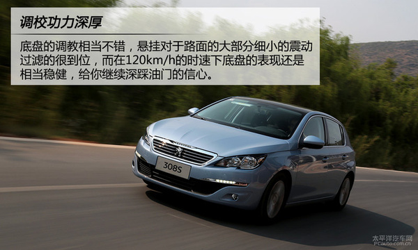 308S采用了前麦弗逊独立后扭力梁式非独立悬架,底盘的调教相当不错,悬挂对于路面的大部分细小的震动过滤的很到位,而在120km/h的时速下底盘的表现还是相当稳健,给你继续深踩油门的信心。