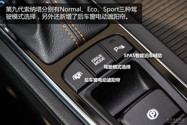 新车的内饰可以说和外观“表里如一”,整体风格同样偏向沉稳,不会给人感觉内外不协调。中控的部分也从上一代的“Y”字型变为“T”字型,中间别致的“小人”设计(空调调节按钮)也不复存在,从此也能看出索纳塔九开始脱去稚气渐渐走向成熟。