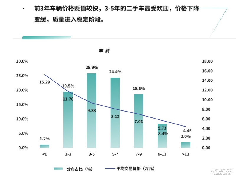 如下图所示,新汽车在前三年的掉价速率更快,而三年刚开始掉价速率便会缓减。针对初次买车群体而言,选购车子车龄三年之上的二手车型不但价钱特惠,并且升值的车系会由于其销售市场供求水平、拥有量等优点,将保持优良的升值趋势。而当消费者应用一段时间后,有高些的出行要求,再将户下的车转卖出来情况下,价钱仍有一定的汽车保值率。因而,升值是一种量变到质变,越多的人买越升值,越升值就越多的人选购。