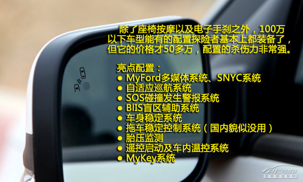 评价:在五十万元这一行业里,还真的很难找到与冒险者零距离抵抗的车系,思来想去,丰田普拉多4.0L版本号算作一个,但这辆车還是较为趋向于越野车特性,在道路舒适度及其奢华度上面不如冒险者。而类似规格的奥迪Q7、途锐等都早已超过这一范畴太多了,换句话说,冒险者算作独树一帜,稳稳地在它的行业里悠闲自在,它有的便是性价比高优点。
