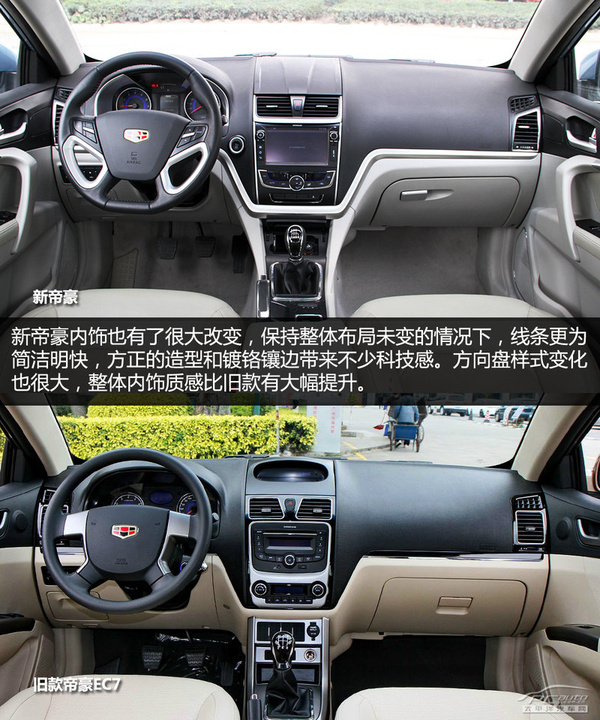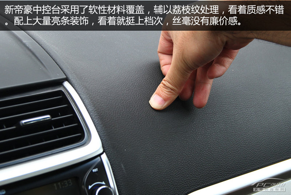 再聊说车内饰用材,老EC7上就早已主要表现十分优异了,仪表台均选用柔性搪塑材料铺设,这一点非常给力,而新帝豪一样延用了这一优良作风。