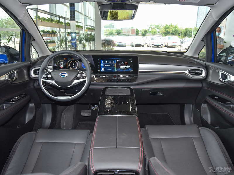 车内饰一部分,Aion V则是应用了埃安车型的设计方案:尺寸较大的仪表盘、中控台连瑜伽体式大屏幕和分离式中安全通道控制面板,还应用了很多的皮层和硬包遮盖。