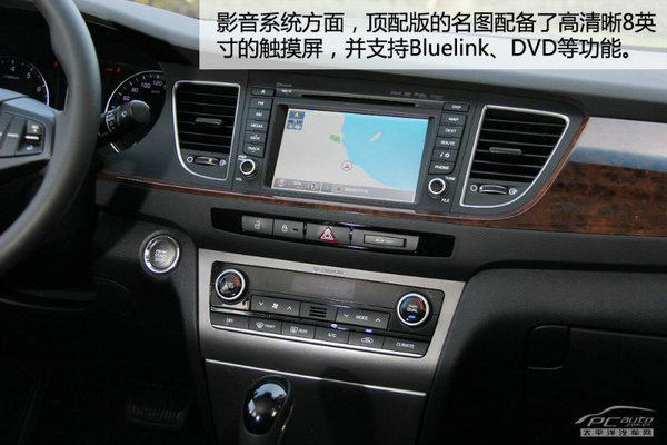 仪表台保护区集中化了多媒体系统与中央空调的全部功能键,功能键的排序整齐而且总面积够大,即减少了操作失误的概率,入门也更加非常容易一些。多媒体系统触摸显示屏十分功能强大,系统软件还包含适用Bluelink系统软件、DVD等作用。此外中央空调区还选用了仿不锈钢拉丝材料外框,提高了挺大一部分视觉冲击。