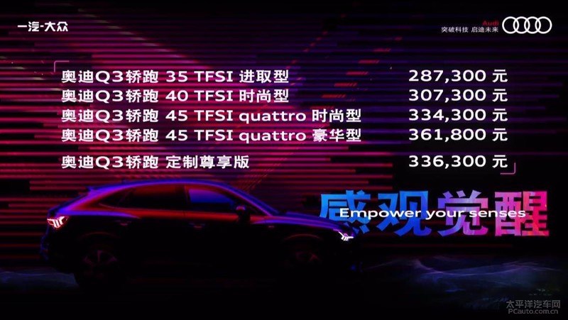 | 车系 | Q3 Sportback 35TFSI | Q3 Sportback 40TFSI | Q3 Sportback 45TFSI |