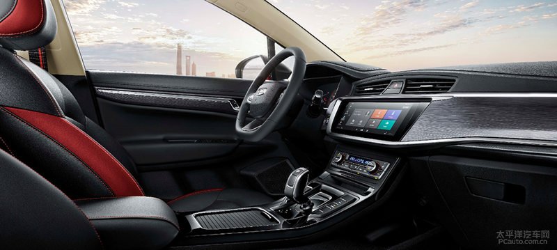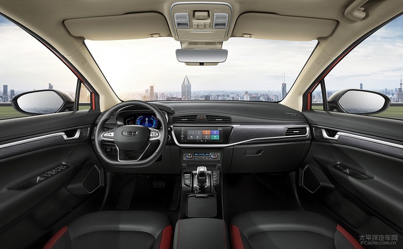 最新款吉利帝豪GS的车内饰一样延用该款车系的设计方案,全系列拆换为红 黑的拼色颜色设计方案,感观更加时尚潮流。配备层面,新汽车配置7英寸全液晶显示屏仪表盘、内嵌好意头GKUI 19吉客智能化生态体系的10.25英寸中控台液晶显示屏、AQS空气指数智能管理系统及其空气负离子空气过滤系统软件等。
