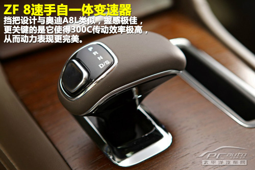 最新款300C上ZF 8速变速器的出現让人出现意外,D档行车方式时系统软件绝大多数時间会把驱动力调配成ECO经济体制,尽量的减少转速比来减少耗油量,而更高精密的变速器也促使车系在 120km/h行车时柴油发动机但是1500rpm,全套动力装置让300C做到了同档次车系的高质量。