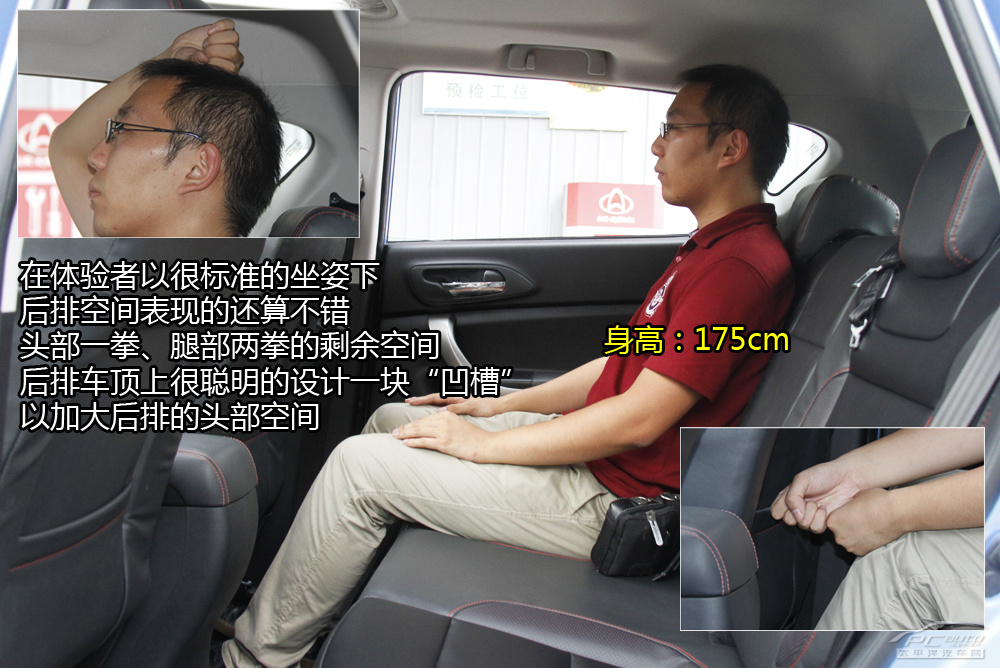 后排座坐椅的舒适度和前座一样,较为绵软,但另外也偏薄弱了些。后排座的室内空间主要表现非常好,175cm感受者在规范的座姿下,脚部还有两拳间距,头顶部也有一拳。后排座坐椅的正中间部位还设立了三点式的保险带和少年儿童儿童安全座椅锁扣,这一点還是较为良心。