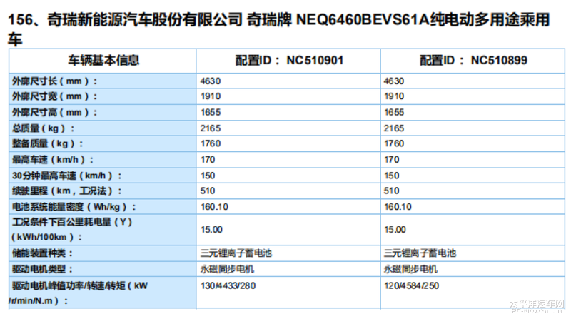 【尊流汽车网 新汽车频道栏目】此前,在国家工信部最新一期新能源车营销推广文件目录中曝出了奇瑞汽车eQ5车系的基本信息,新汽车NEDC里程数为510km,选用比能量为160.1Wh/kg的三元锂电池,工作状况标准下一百公里能耗15kWh。据了解,新汽车编号为S61,根据奇瑞汽车铝制纯电动车服务平台打造出,预估将于2020年5-6月正式上市。
