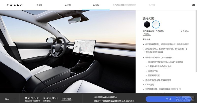 除开价钱升级以外,大家还从官方网站发觉,国内长续航力车系能够 选配乳白色车内饰,价钱为8000元,先前仅有灰黑色车内饰可选。