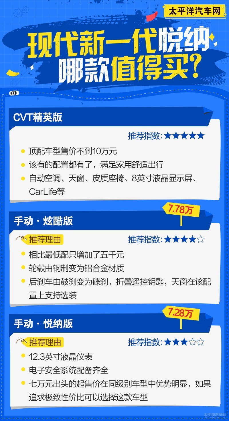 【尊流汽车网 导购员频道栏目】北京现代汽车新一代悦纳正式上市,市场价7.28-9.68万元。当代为新一代悦纳融进了全新家族化设计风格,对比该款车系更显时尚潮流炫酷,驱动力上则再次配用1.4L自吸柴油发动机。本次新一代悦纳共发布四款车系,我们一起来看一下哪些配备最非常值得选购吧。