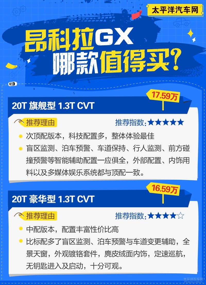 【尊流汽车网 导购员频道栏目】七年前昂科拉打开了中国人对中小型SUV的认知能力,现如今全新升级更新换代发售后,不但拥有全层面的提高,另外还产生了上汽通用轿车别克汽车主打产品全新升级的紧凑SUV——昂科拉GX,配用1.3T涡轮增压器柴油发动机,配对CVT无级变速箱与9AT,考虑国六排放规范,市场价为15.59万余元-18.59万余元,顺从流行年青个人用户的出行要求。做为与全新升级昂科拉一大一小的双子星合理布局,昂科拉GX更注重室内空间、汽柴油合理性、智驱高新科技及安全性,但到底哪一款更值得购买呢?下边使我们来一起剖析剖析。
