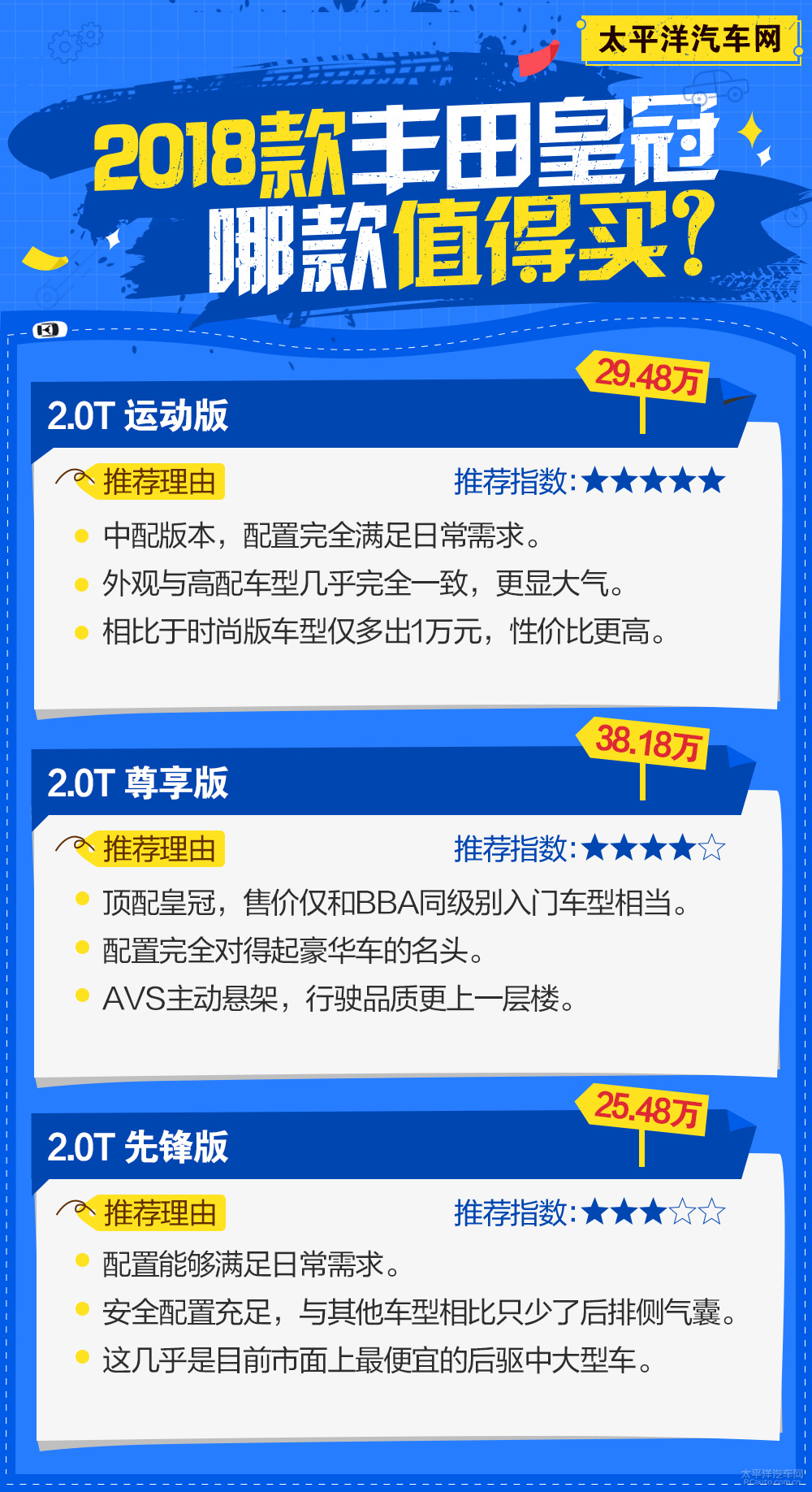 前不久,一汽丰田公布黄冠全系列官降一万元,调节价钱后,黄冠的参考价范畴下挫来到25.48-38.18万余元,并且终端设备上广泛拥有2-三万元的特惠。下列是现阶段黄冠的市场价表。