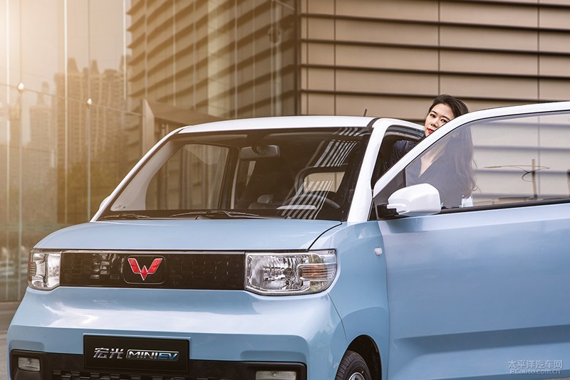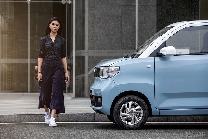 宏光MINI EV为双开门四座合理布局,尺寸各自为2917/1493/162毫米,轮距为1940mm。其外观设计选用“裁边几何图形”设计方案技巧,有棱有角却无失亲和力,颇具立体式意境及动态性艺术美。车体选用竖直中有点“微曲”的型面,把车侧外貌演译得更为动感而颇具意趣。