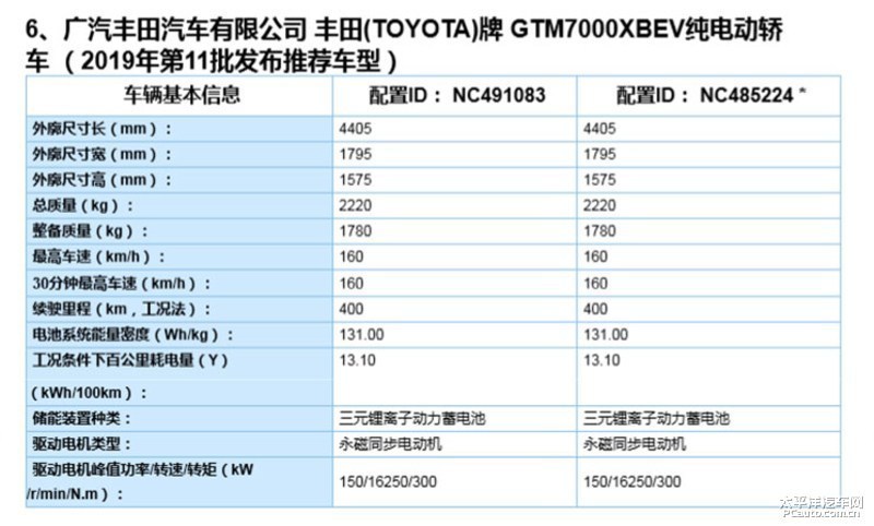 由此前曝出的申报信息,丰田汽车“E进擎”这2款新汽车将配用至大功率为155kW(204PS)的驱动电机,比能量为131Wh/kg的三元锂电池组,能耗为13.1kWh/100km,NEDC工作状况里程数为400km。