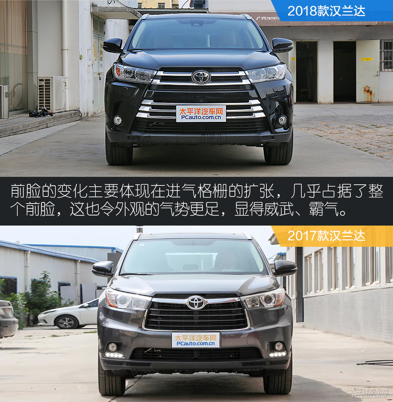 新汉兰达的外型造型设计拥有显著的转变,充分体现在进气格栅一部分。进气格栅总面积再一次增加,左右梯状融为一体,并选用多辐不锈钢装饰,延用了北美版丰田汉兰达的造型设计。对比于该款丰田汉兰达,扩大的进气格栅看起来更有攻击性,质感也更强。丰田汽车不欠缺独特的设计方案,但是这一转变可否获得中国顾客认同还必须時间得出回答。值得一提的是本次丰田汉兰达出示了三种不一样的进气格栅造型设计,在其中包括了我国专享的进气格栅,这让丰田汉兰达不一样级别真实身份的车系更非常容易获得识别。