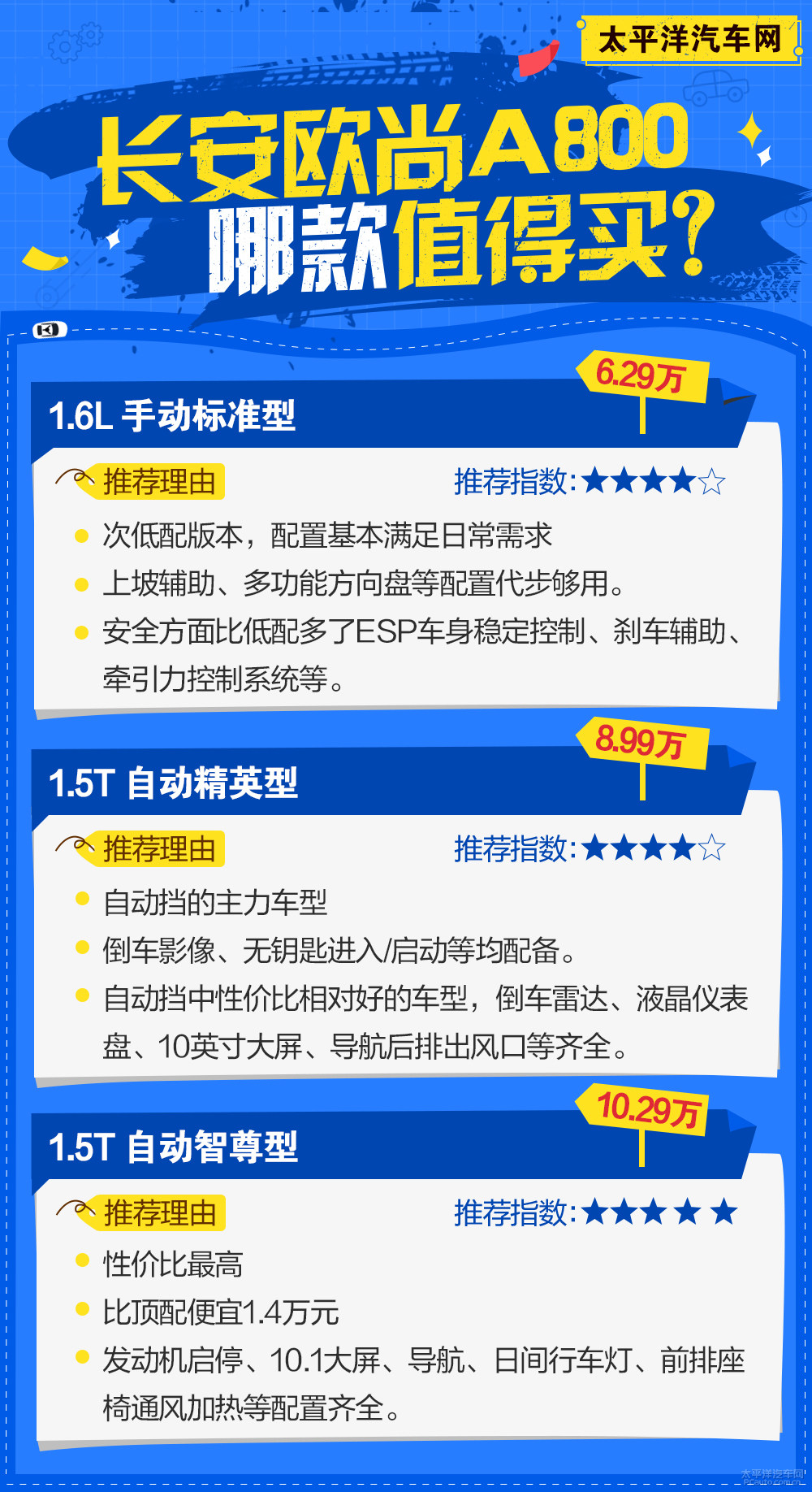 历经了对长安欧尚A800基本讲解后,大家对长安欧尚A800的特点都是有一定掌握。下边大家就给大伙儿讲解一下每一款车配备上的差别,究竟哪种值得购买,合适自身心里的预估,将要一目了然。