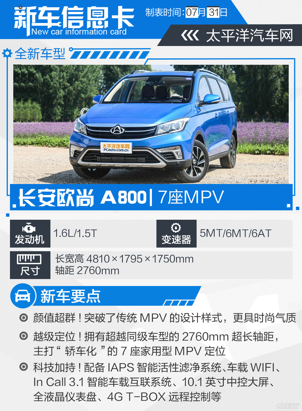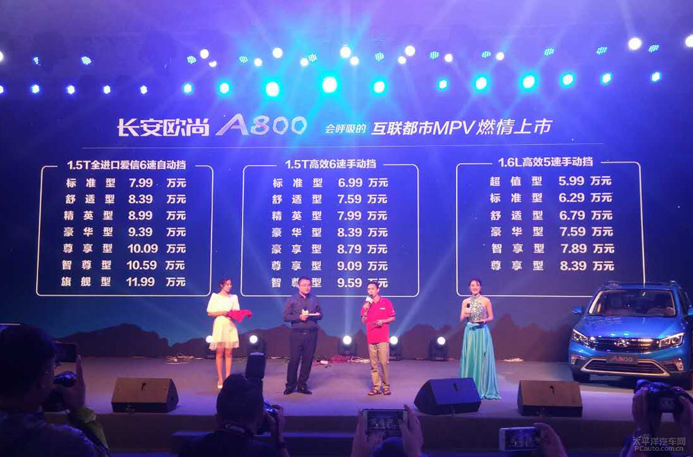 长安欧尚A800车系7月31日在重庆市正式上市,市场价区段为5.99-11.99万余元。新汽车出示1.6L 5CT、1.5T 5MT、1.5T 6AT三种驱动力组成,总共发布20款车系。