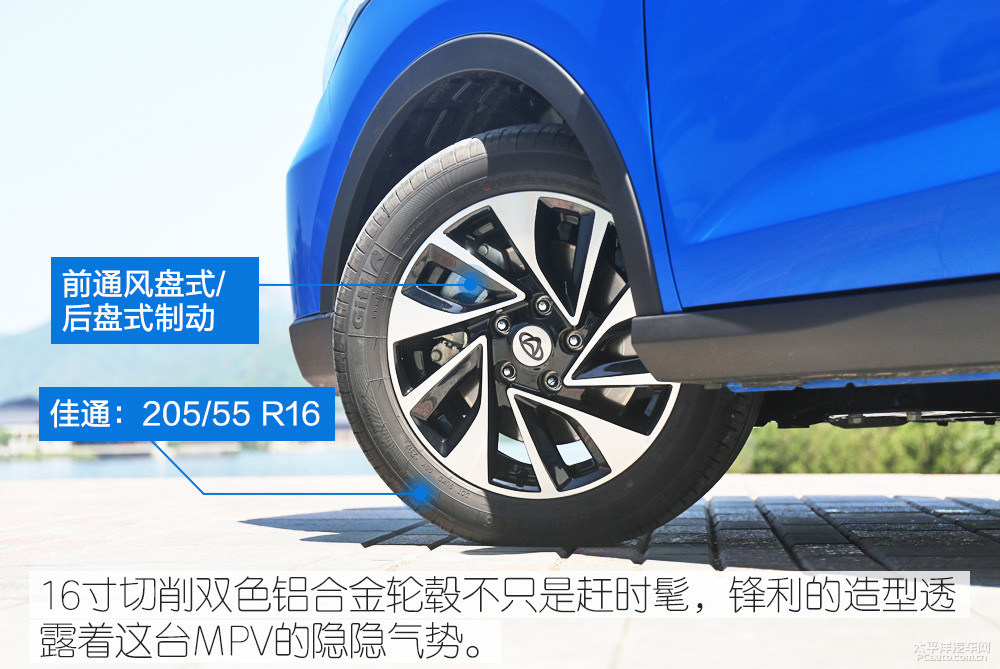 长安欧尚A800关键点上的时尚潮流展现得很及时,如翼子板上的涡轮增压器标志及其鲨鱼鳍天线等。整体视觉冲击相比合资的MPV并不会稍逊过多。